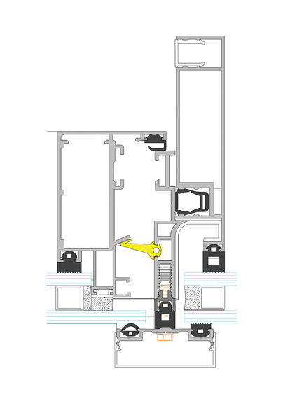 در این نوع نمای کرتین وال، لامل به کار رفته در نما، باعث مخفی شدن پروفیل های بازشو می شود و قطعاتی که در ساخت و نصب پنجره بازشو به کار می روند، از نمای بیرونی، دیده نمی شوند. این نوع پنجره ها به دلیل زیبایی خاص در نما و مزایایی که دارند از پرطرفدارترین پنجره های آلومینیومی هستند. این نوع طراحی(دیده نشدن قطعات پنجره آلومینیومی) سبب ظرافت زیادی در پنجره و نمای ساختمان می شود. در واقع در پنجره های لنگه مخفی، پروفیل باز شو و ثابت پنجره دارای نمای یکسان و مشابهی هستند. علاوه بر این یراق آلات و لولاهایی هم که به کار می روند دیده نمی شوند.