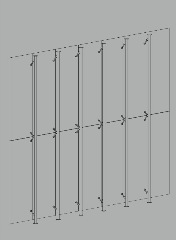 این نوع سازه یکی از رایج ترین و کم هزینه ترین نوع سیستم های نگهدارنده در نمای شیشه ای اسپایدر بوده که در آن از لوله ، پروفیل و یا ورق به عنوان سازه پشتیبان در نوع ساده آن تا سازه خرپایی در انواع پیچیده تر آن استفاده می شود. جنس ، قطر و ضخامت اجزای این نوع سیستم نگهدارنده به عوامل متعددی مانند ابعاد و وزن شیشه ، ابعاد دهانه کار و موقعیت جغرافیایی پروژه بستگی دارد. طراحی این سازه ها نیز بر اساس بارهای مرده ناشی از وزن نما و بارهای زنده مثل باد و یا زلزله انجام می شود.